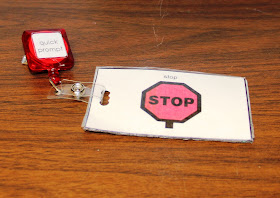 Home Adaption: Nametag Quick Prompts can also be used at home or on the go to prompt children to look, wait, be quiet, stop, etc. Parents and caregivers can attach them to their purse or jacket so they have them when they are out and about. They're a great way to remind children how to behave in public.