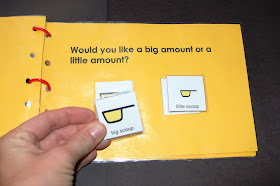 The students then create their own personal trail mix. Each student uses visuals from the social story to request the snacks they would like to put in their paper sack.