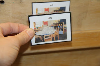 Depending on the student, the schedule may be in random or exact order. Either way gives the student a visual of how much work they must do before going home. As the students move from one activity to the next, they place their icons on a picture posted by that center or activity.