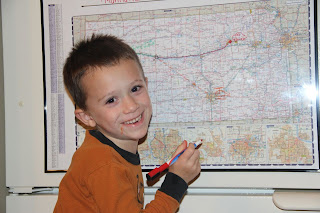 Then, I simply framed the map and added a key to represent both mom & dad's travels. (My husband is a flight medic and flies to small and large towns throughout Kansas adding to the daily Kansas geography lessons for our boys.)