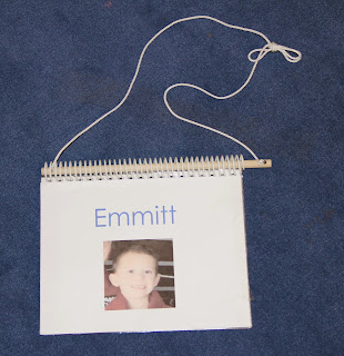 All of his schedule icons and reindeer reinforcers are velcroed inside his DVD case schedule.