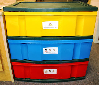 Teacher's Tip: Our name tag schedules are in Ziploc name tag covers. I found these at our local office supply store and I love them! They are a little more durable than typical name tags and they can be sealed shut so the kids don’t get water on them while washing their hands or playing at the sand table. I keep a few extra schedules on hand so if I have a change in schedule or a kid is out sick I can adjust the students' schedules to be with different children or do activities in a different order.