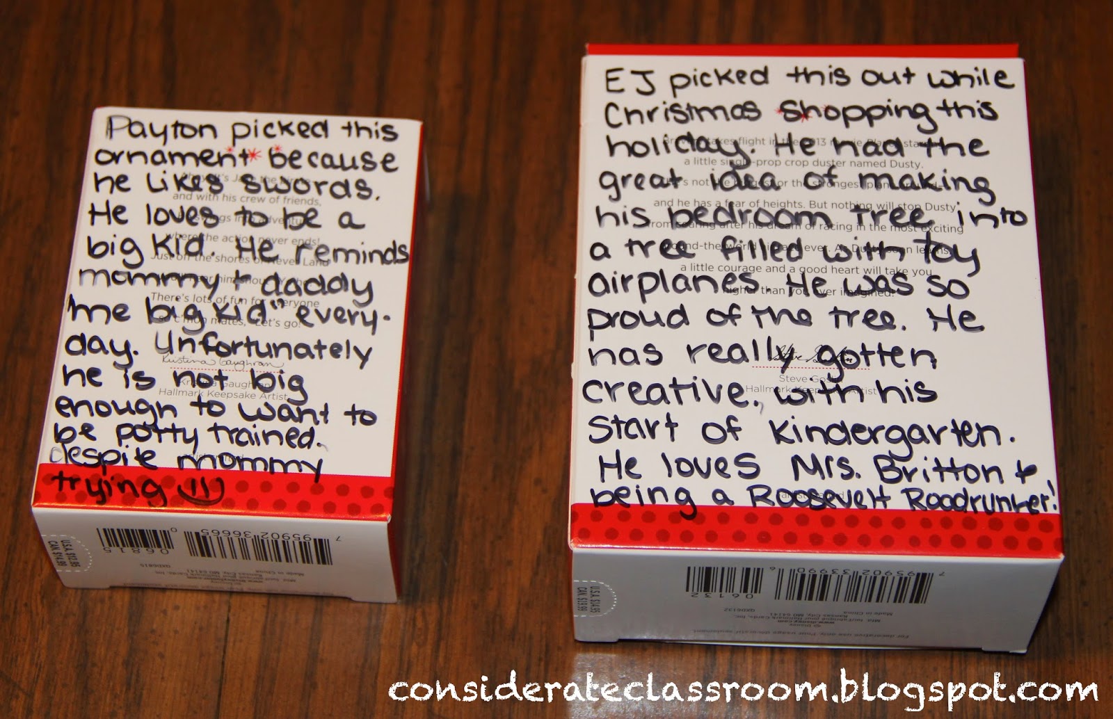 On each Hallmark box, I write a little something about what they were doing that year making great memorabilia to pass along to their families when they get older.