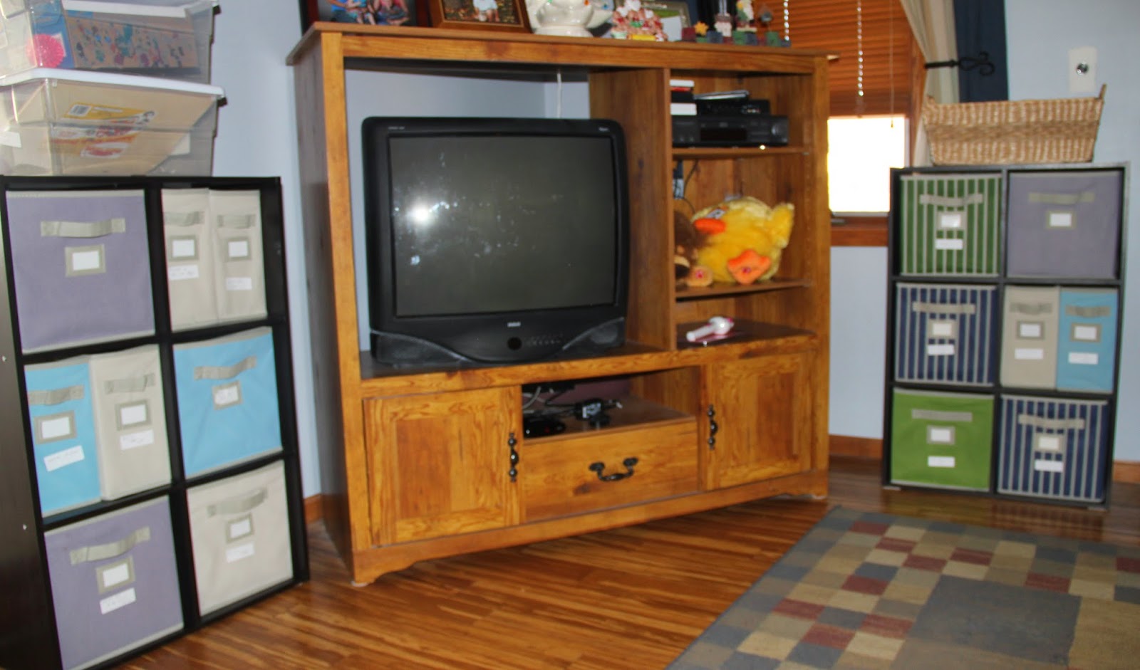 So how did we build structure into her home? Well, HUGE props to her mom, dad, and grandparents for doing just that! I shared with them a few ideas for structuring her toys and play things. For the most part, Natalie has never found interest in toys. She would much rather dig in the kitchen cabinets or get into the refrigerator so we had to come up with a way to make toys interesting to her. She loves to put in and take out. She has become very proficient at put in tasks. So her dad simply repurposed the cube shelving that they had in the family room and her bedroom.