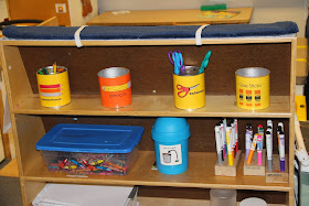 a dry erase marker to mark off art materials that are not a choice for the day.