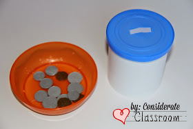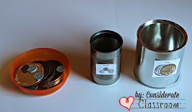 TASK TWO: Errorless Size Sorting (I purposefully used a small can and a larger can.  The large coins only fit in the larger can to support success.  Increasing the probability that the students will sort correctly provides more opportunities for success!)