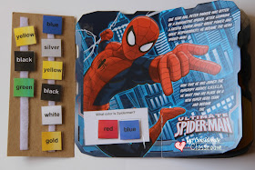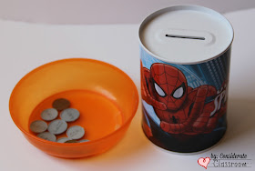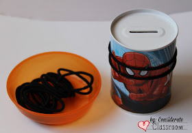 Now on with today's post, what better way to start back up then with some Dollar Tree inspired work tasks and fun activities for boys! All you need is to purchase the Dollar Tree items in the photo below: an Ultimate Spiderman board book and piggy bank, toy skateboards, 2 3 packs of match box cars, Easter egg cars and black ponytail holders.