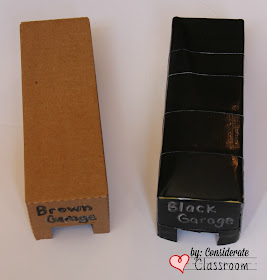 You can do cards with both the black and brown garages to make it more difficult for higher students or even call out the numbers on the cars rather than the colors.