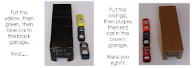 You can do cards with both the black and brown garages to make it more difficult for higher students or even call out the numbers on the cars rather than the colors.