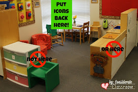 It is all about thinking through the process. One other tip I have found along the way, is the importance of being strategic about where we place the icon to be matched to. For example if the dramatic play icon is on the outside of the dramatic play area, a student could potentially MATCH AND RUN! If the icon to match to is in the back of the center, then the student has to actually walk into the center to match up, which will then help them see items in the center and more likely engage with the activities and peers in the space rather than matching and running!